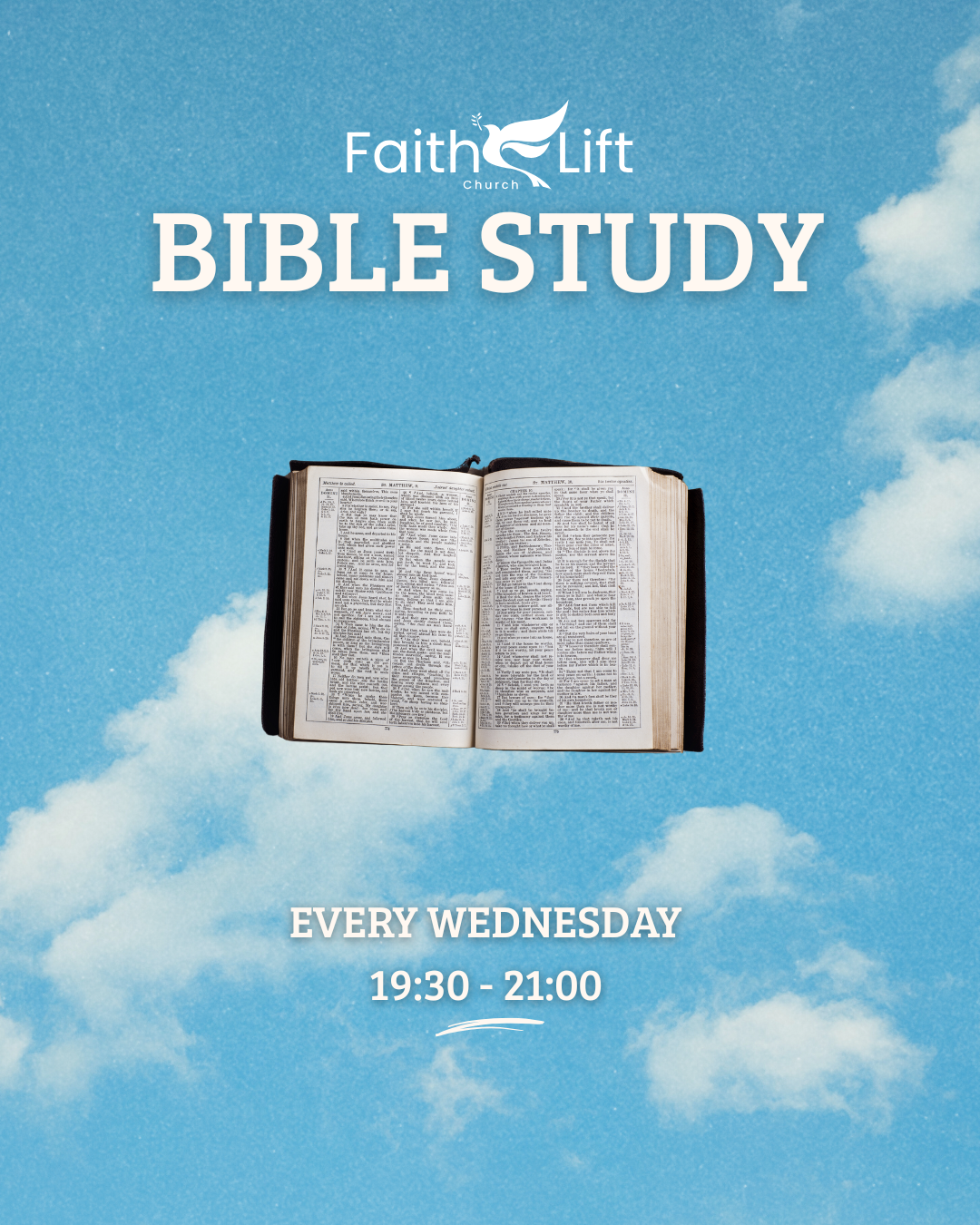 Join us during the week for our weekly prayer meetings and Bible studies! Contact us for more information on how to join.